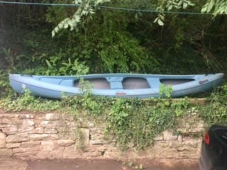 On reaching Symonds Yat West we checked into The Old Ferrie Inn for the night just in time for the heavens to open, releasing heavy, persistent rain for several hours. There was nothing we could do but spend our time usefully in the bar drinking pints of Butty Bach. Mark, from the Ross-on-Wye Canoe Hire Company joined us in the bar and pointed out a canoe belonging to the hotel owner, that was for sale. Taking a look at it got me excited.