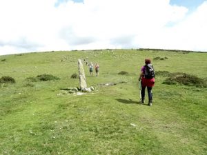 Our first high point was Butterdon Hill. From there we headed predominantly north, following occasional stones standing vertically out of the moor. They are part of the longest row of standing stones in the world, being two miles in length. These rows, and sometimes circles of stones, are of historical significance, having stood there for hundreds, or even thousands, of years, marking the way across the bleak moors, depicting burial sites and boundaries. These would have been very useful if the weather had been so poor that the upland was covered in cloud. However, today was bright and clear.