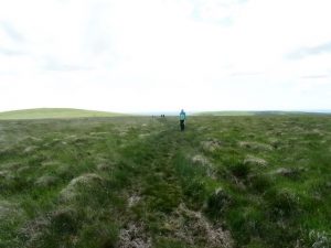 From Simonsbath we immediately climbed up on to the moors where herds of young cattle followed us with interest. Despite being cloudy, it was quite a pleasant day. Having reached Exe Head, the source of the River Exe, we began our descent towards the north coast. It was great walking country and it was easy, on good paths, to make excellent progress.