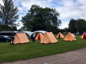 We had now completed just over half the distance and it was time to take a day off walking while we moved camp. As we approached Yeatheridge Farm, near Withering, the heavens opened and it looked like it was going to be a very unpleasant process of establishing camp. Fortunately, the rain eased, the sun came out and the remainder of the day was very pleasant. With everything set up, people sat in the sun drinking Pimms while some of us played Kubb. This proved to be the only occasion when the weather was good enough for such relaxation and activity.