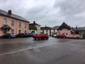 Sodden earth under leaden skies greeted us the next morning and it was still raining heavily. It wasn’t far from Black Dog to Witheridge, so I suggested Angela meet us there for coffee. She could be the advance party to find the best place for us. Spirits were a bit damp and we needed a comfortable coffee break. The message came to me that there were no cafes open in Witheridge and my feelings for the place plummeted. True enough, they were all closed apart from a room that advertised coffee, conversation and companionship, a place for lonely old people I realised as I stuck my head around the door. Ideal! Not! In the end we discovered that the shop served hot drinks and, rather than coffee, the comfort of a hot chocolate, and a pasty was much appreciated.