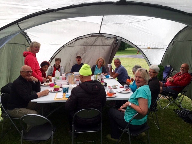 I had hoped and expected that the weather might be better in the north of the county but, in fact, it proved to be worse, with more rain. We were joined, for this second leg of the journey by Sally, Libby and newbie, Jan, who were all staying in a rather palatial fixed caravan on the site. Somewhere to go to avoid the rain.