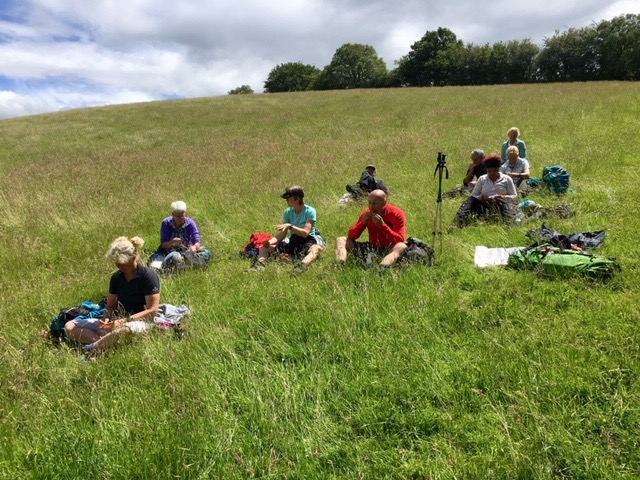 Dragging ourselves on, we crossed field after field until we reached the hamlet of Hittisleigh where the last section was road. We had cut the distance short for the day because of concerns over the minibus coping with very narrow lanes. Hence, we stopped in the middle of nowhere.