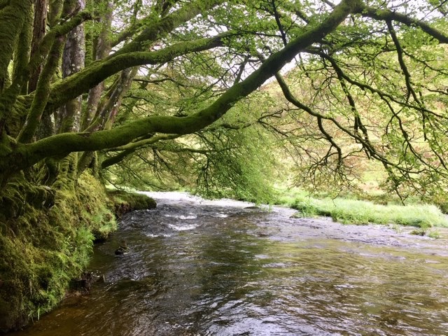 Another descent into the hamlet of Ponsworthy then took us along a stretch of the River Webburn before climbing and descending a hill, by road, that took us down to Widecombe in the Moor, a delightful village surrounded by moorland. In the middle is the Old Inn, where we found ourselves settled before heading back to camp. It was so delightful there that we decided we would eat there on our last night before moving camp for the northern half of the walk.