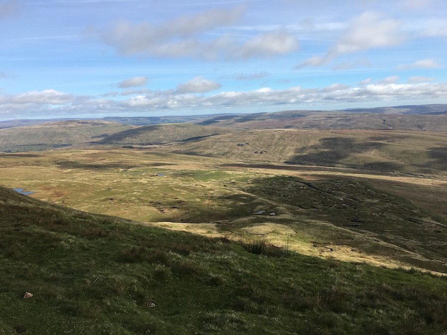 I never really appreciated before just how far west the Yorkshire Dales go, but from this lofty viewpoint Lancashire was well and truly squeezed between the Dales to the east and Morecambe Bay to the west. Just to the north of Morecambe Bay the hills of the Lakes could be clearly seen, with Scafell Pike and others being easily identifiable. To the north, south and east there were rolling hills as far as the eye could see.