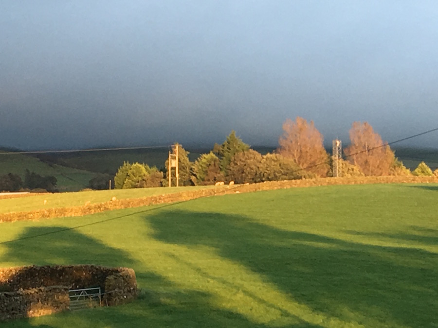 IMG_4979As the afternoon wore on the rain ceased and just before dusk we were treated to some sunshine casting a strong light on the fields leading up to a still cloud enshrouded Ingleborough. The evening was spent eating good, home cooking (although I say it myself) and lively and amusing conversation until, gradually, people began to drift off for an early night. A combination of exercise, fresh air and perhaps a little over-indulgence the night before, ensured that nobody was late to bed.